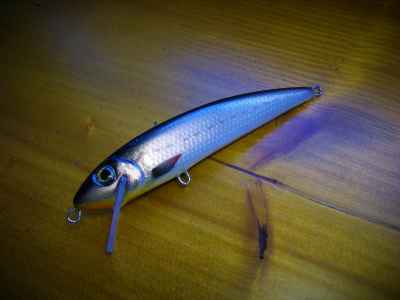 Coś uklejkowatego czyli 11,5cm i 14g. Na boku lekko fioletowo perłowa opalizacja której niestety na zdjęciach nie widać
