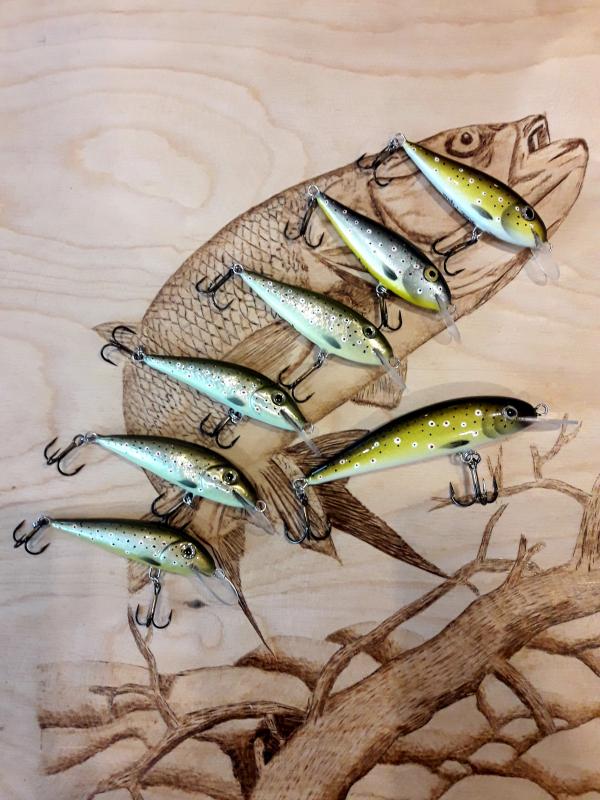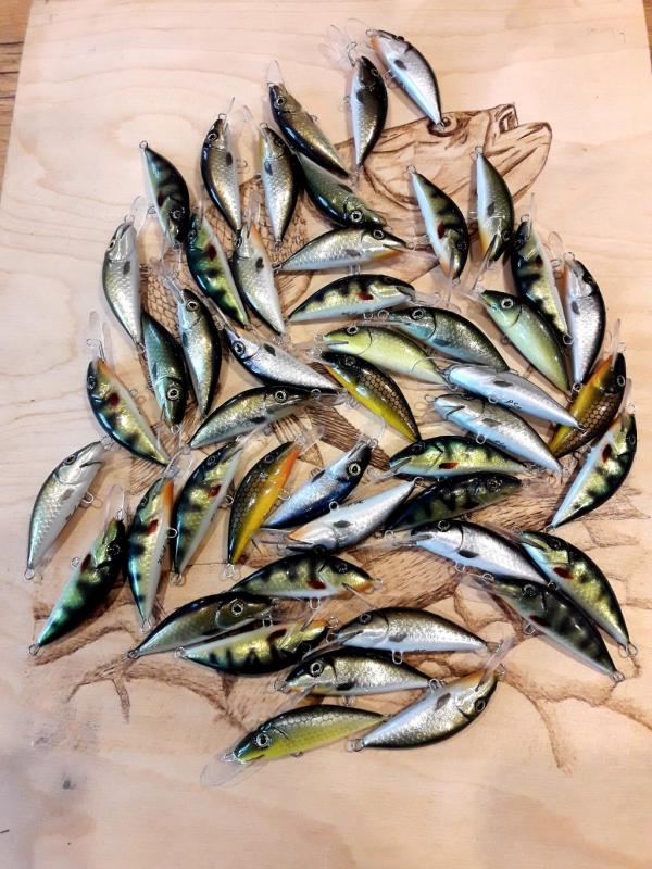 Żeby nie było że Piotrek jest leń i nic kompletnie nie robi :P uklejeczki w wersji płytkiej, klasycznej głębokiej i SDR oraz wypociny pstrągowe :)Powstało jeszcze sporo boleniowek ale muszę je wyciągnąć z pudełka do zdjęcia:)
