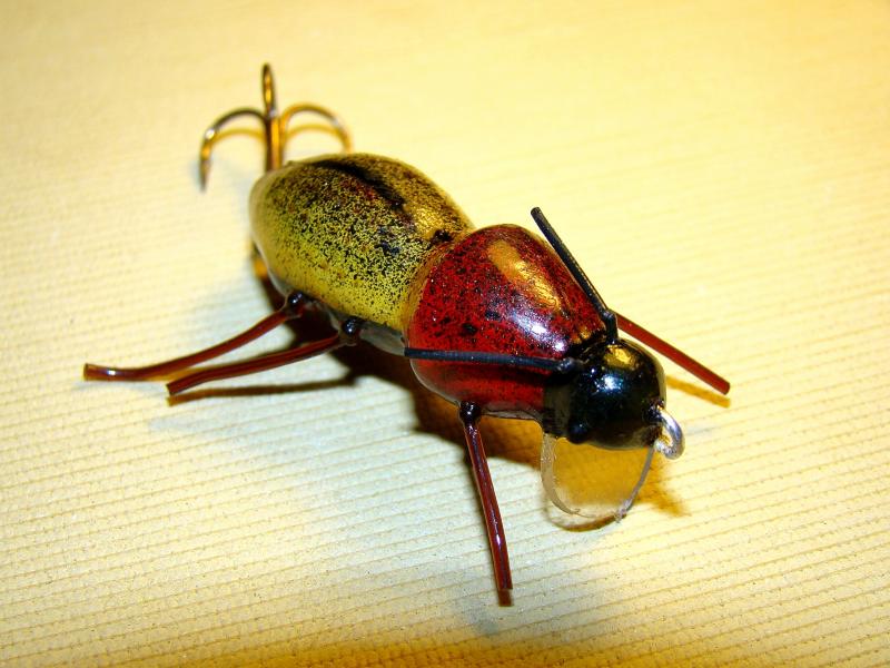 W ramach odstresowania od smużaków z balsy, coś z żywicy. :) Praca miła łatwa i przyjemna, to nie to samo co struganie w drewnie. Żuczek smużący /forma od @lysy69/, praca agresywna, długość 27mm  ciężar 2,3g. Malowany ręcznie. Nie mogę tego nazwać twórczością, raczej doskonaleniem malowania pędzelkiem, jak bym malował takie same w dużych ilościach, aerografem to byłoby to z pewnością rzemiosło. Muszę zrobić sobie kilkadziesiąt ale już bez nóżek w różnych kolorach bo praca jest bardzo ciekawa. :)