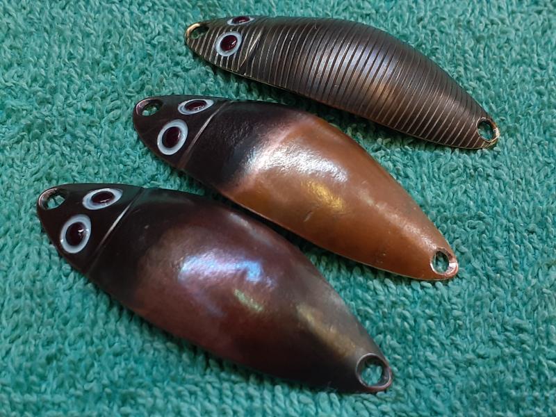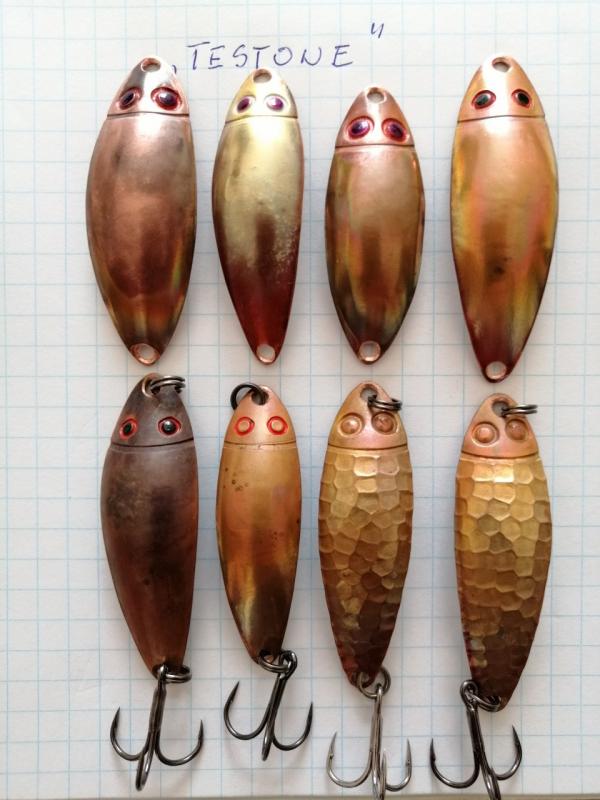 TOFIX99 Opublikowano 12 Marca 2020 Zgłoś Udostępnij Opublikowano 12 Marca 2020 ame="TOFIX99" post="2721625" timestamp="1583315914"] Wiesz co ????,ze względu że jesteś już zaawansowany w łowienu na żaby ☺,to może sam se sprawdzisz jak te pracują i czy łowią ????,chętnie wysłucham twojej opinii ????.Dziś Ci wyśle to na weekend może sprawdzisz. Zobowiązałem się to skrobnę parę słówek co do "tesowych żabek". W mojej opini różnica jest tylko w kształcie i to bardzo nieznaczn6ie. Może zdjęcie na papierze "milimetrowym" dałoby więcej do zobrazowania.Od lewej jest 6g.,5g.,4g. i 6g.Tak samo na dolnym rzędzie. Praca ich jest taka sama. Ja zakładam kotwice "ciężkie". Przy nich wahnięcia są płynniejsze i podczas szybszego prowadzenia wahadło nie wpada w ruch obrotowy. Dla porównania VMC nr8; Są 2x lżejsze, przy nich "dupcia" zamiata szybciej ale trzeba wolniej prowadzić. ???? 2 Cytuj Odnośnik do komentarza Udostępnij na innych stronach Więcej opcji udostępniania...