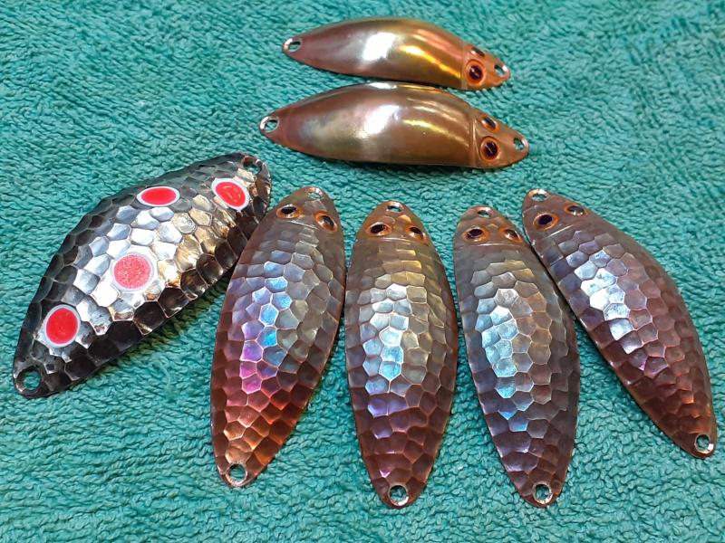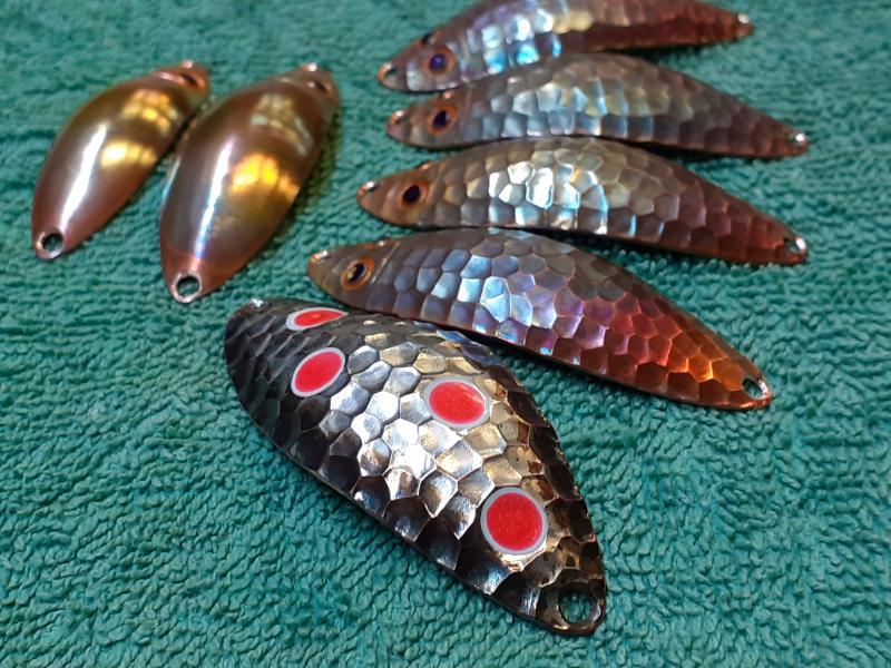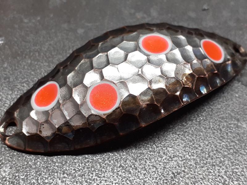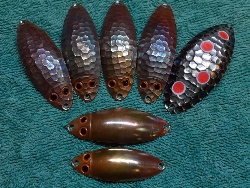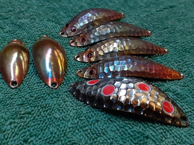 jacek.hetflaisz Opublikowano 6 Marca 2020 Autor Zgłoś Udostępnij Opublikowano 6 Marca 2020 Łozyska mogą być i stożkowe i zwykłe, zwykłe po prostu trzeba przeciąć aby je rozebrać, a i tak jedne i drugie trzeba oszlifowac rant do takiej grubości jaka jest nam potrzebna. A co do dzielenia się niby tą wiedzą ☺,to w sumie sprawia mi to przyjemność jesli mogę w czymś pomóc kolegom ????????. A tu jeszcze moja płetewka, którą można wybijac pojedyńczo lub raz przy razie, tak własnie nabijam ją na moich rybkach na płetwie ogonowej. Wykonanie podobne do mojej łuski. Po prostu trzeba mieć oczy szeroko otwarte ????,bo jest tyle rzeczy które można wykorzystać do zdobień????. Jeszcze jedno do zdobień głeboko bitych lub na całej powierzchni blaszki to proponuje blachę miedzianą i mosiężną najpierw przepalic rozgrzewając do czerwoności, miedzianą po podgrzaniu studzę od razu w wodzie a mosiężną odkładam na bok aby powoli ostygła. Aby tak oklepac blaszkę to lepiej ją wcześniej przypalić. 14 Cytuj Odnośnik do komentarza Udostępnij na innych stronach Więcej opcji udostępniania...