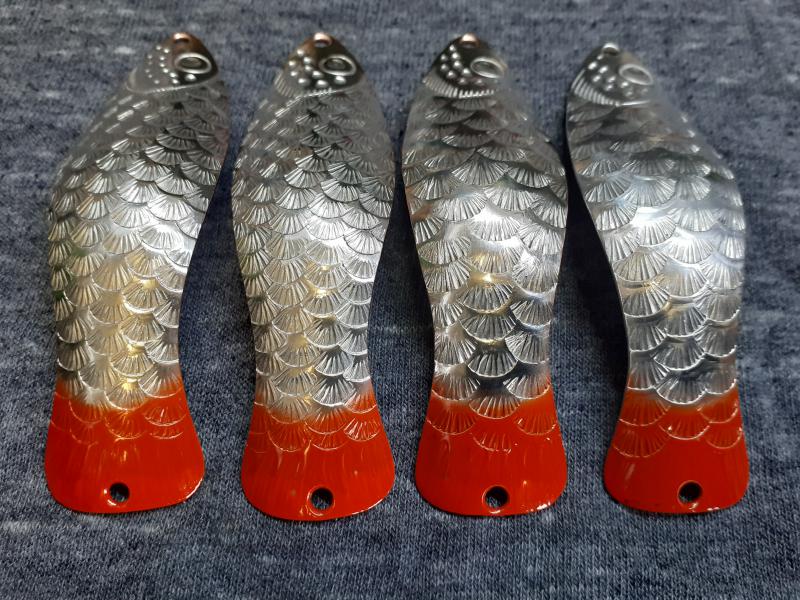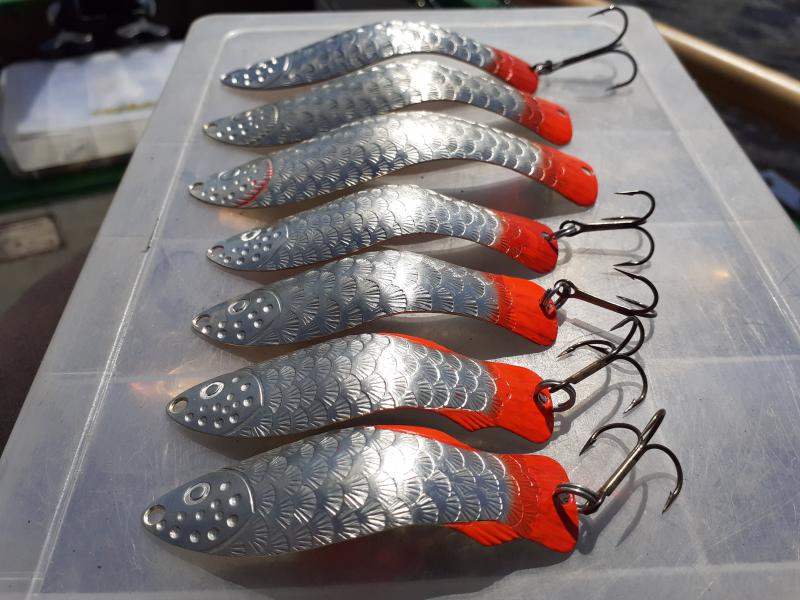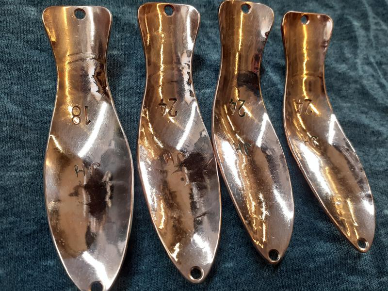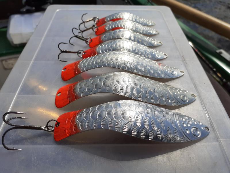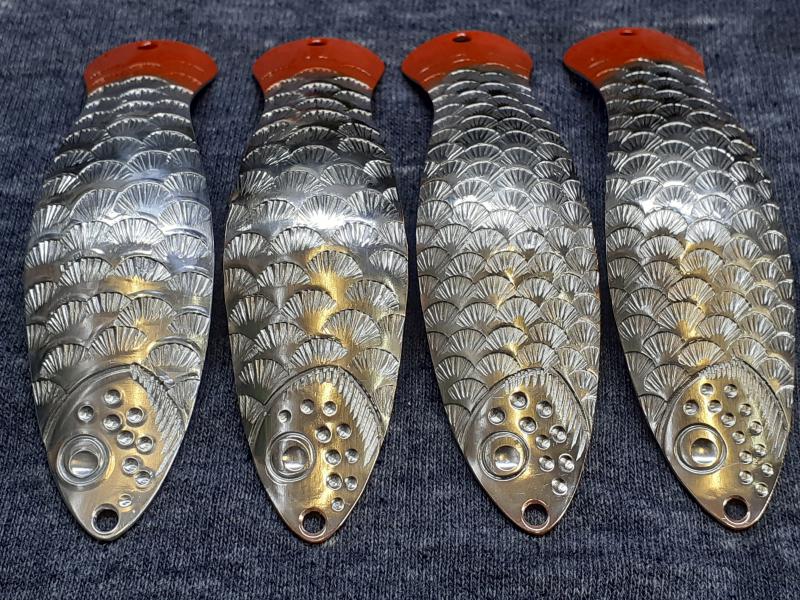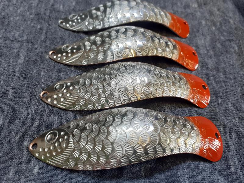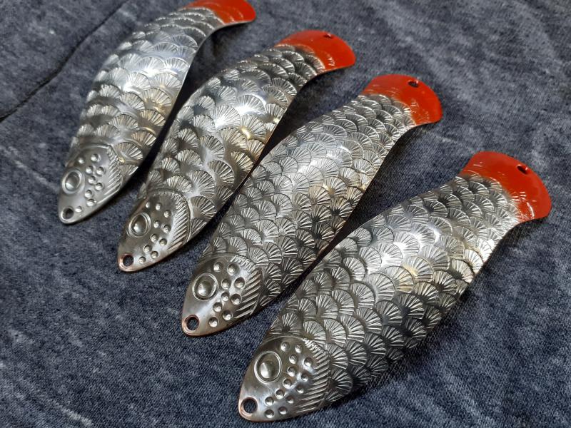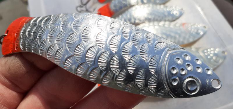 Delbanka Opublikowano 25 Czerwca 2021 Zgłoś Udostępnij Opublikowano 25 Czerwca 2021 Onegdaj otrzymałem od Jacka parę blaszek z głęboko wytłoczoną łuską. Wierzch lekko przetarłem drobnym papierem, "co by za bardzo się nie świeciły"- przepraszam Mistrzu. Po pewnym czasie wierzch ładnie spatynował a łuski pięknie przebłyskują. Co ważne spodnia część blachy jest gładka, pomimo głębokiego tłoczenia. Przy innych lekko tłoczonych blachach ciężko było nie zetrzeć powierzchni w tłoczeniach. Blaszki sprawdzały się zarówno w wodzie mocno trąconej jak i nie odstraszały ryb na prześwietlonej wodzie. Wrażenia - wnioski wysnute podczas połowu pstrągów i troci. 1 Cytuj Odnośnik do komentarza Udostępnij na innych stronach Więcej opcji udostępniania...