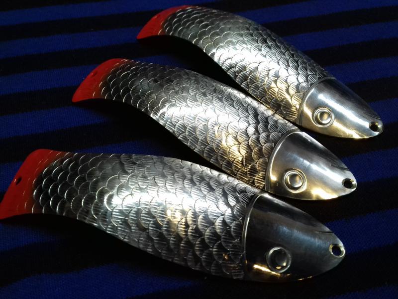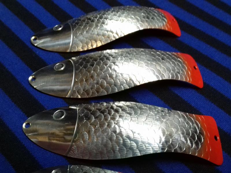 jacek.hetflaisz Opublikowano 16 Grudnia 2017 Autor Zgłoś Udostępnij Opublikowano 16 Grudnia 2017 Był czas, że łowiłem dużymi wahadłami trolując, czasami z ręki. W mojej ocenie trzeba dobrać idealnie wagę do powierzchni nośnej wahadła (długość/szerokość), nadać odpowiedni profil. Wielkość którą stosowałem to 13-15 cm a waga 60/80 gram, kształt Gnoma. Inaczej blaszka niczym szybowiec będzie wychodzić z wody. Używałem wahadła od dwóch rękodzielników i w obydwu przypadkach tylko niektóre egzemplarze raczyły chodzić w miarę poprawnie. Miałem kilka ryb, głównie sandacze w przedziale +60 cm. Zabrakło cierpliwości na większe sztuki o sumie nie wspomnę. Jacek - bardzo ładna robota! Rada - potraktuj to jako wyzwanie a nie nowy kierunek, większość ryb i tak łowi się na błyszcze w granicach 6-8 cm. Moje szczupaki upodobały sobie mikrusy 3,5-5 cm... Andrzeju mój kierunek już się raczej nie zmieni tak jak pisałem chyba setki razy jest to Delbanka i Rybka . A Rybki sprawdzają mi się takie do 10cm ale te najbardziej uniwersalne na które łowie najwięcej to 7-8cm. Po prostu w naszych wodach jest zbyt mało wielkich ryb. A cala reszta którą robie jest wynikiem różnych czasami dziwnych pomysłów ???? ????. 3 Cytuj Odnośnik do komentarza Udostępnij na innych stronach Więcej opcji udostępniania...