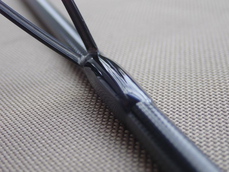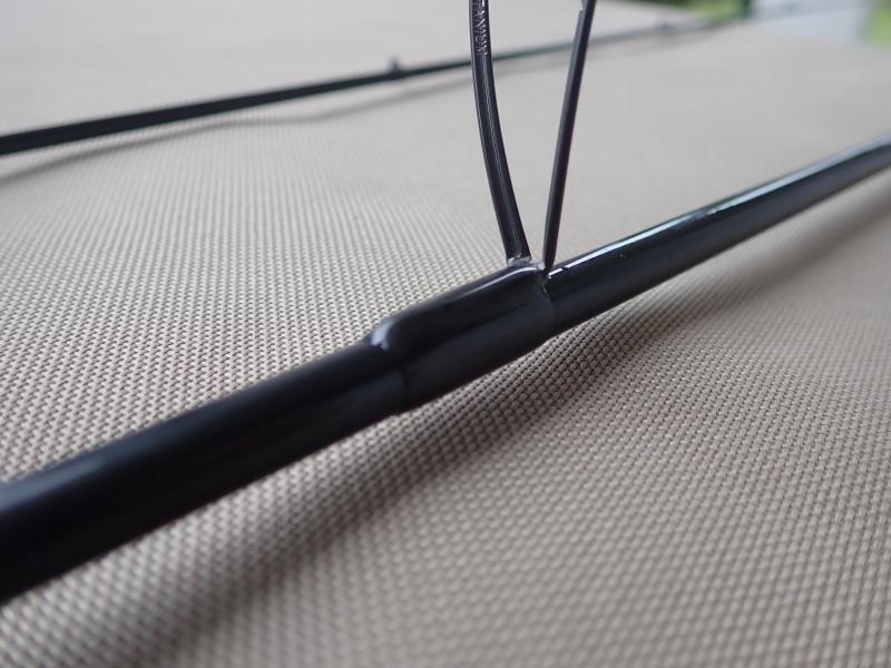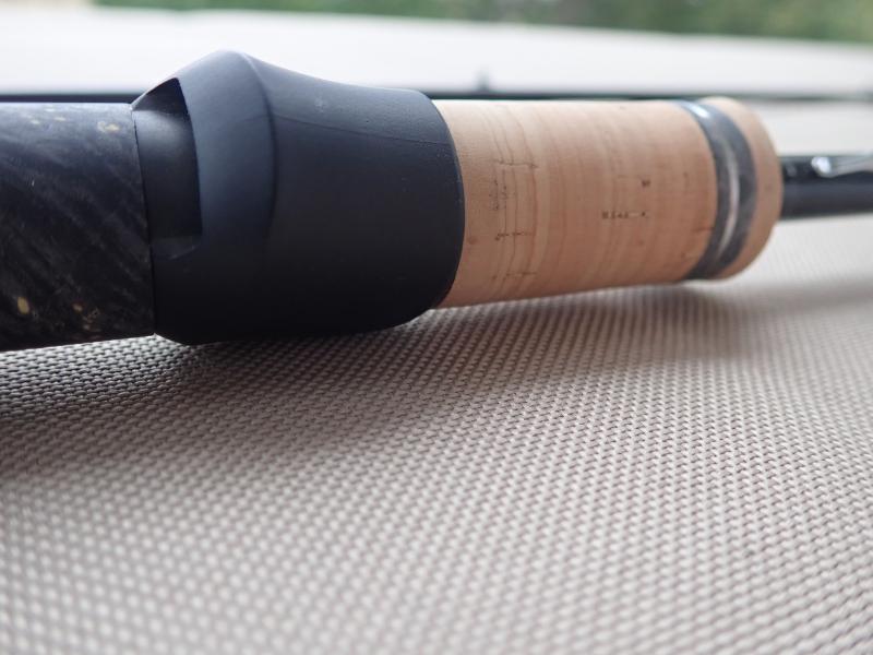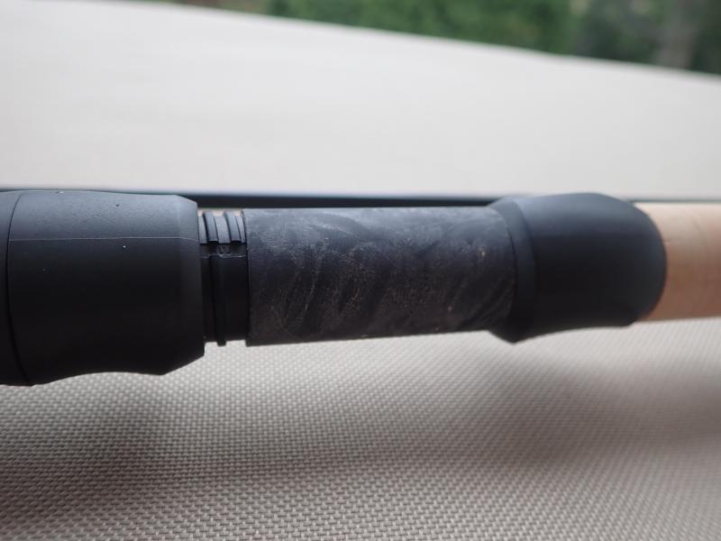 Nawet jesli omotki sa nierownej dlugosci, czego do konca nie mozna ze zdjecia stwierzic bo jest ono zrobione "z kata" to przy tak asymetrycznych przelotkach nie bedzie to "gryzacy w oko" szczegol,- chyba ;)  Przyzwyczailismy sie do tego, ze jak Artur wstawia wedke do watku to jest tam drewno. Bardzo bylem ciekaw czy ktos zwroci uwage na dopasowanie drewnianej "dupki" do piankowej calosci,- nie stalo sie tak...