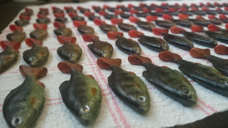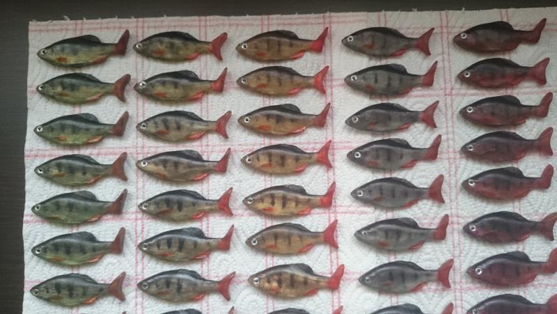 trout master Opublikowano 1 Sierpnia 2015 Zgłoś Udostępnij Opublikowano 1 Sierpnia 2015 Gumiaki gotowe, na razie malowanie dla mnie nie jest istotne, choć wiem że prawie najważniejsze, na to przyjdzie czas.Gumki w dwóch wersjach, zachowują się całkiem odmiennie, i o to mi chodziło, zresztą sami ocencie Która według Was lepiej pracuje? Praca b. dobra. Taka woblerowa trochę. 1 Cytuj Odnośnik do komentarza Udostępnij na innych stronach Więcej opcji udostępniania...
