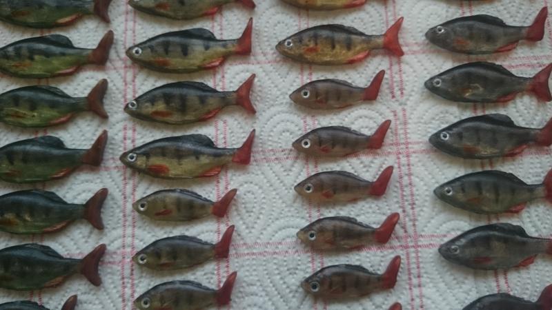 fish28 Opublikowano 25 Sierpnia 2015 Autor Zgłoś Udostępnij Opublikowano 25 Sierpnia 2015 (edytowane) Ja też dzisiaj skończyłem trochę okonków na bazie karasków Dwa dni z życia wyjęte, ale jestem z tego zadowolony. Zobaczymy co ryby powiedzą Pięć wersji kolorystycznych i trzy wielkości 3,5cm , 4cm , 6cmW tych większych oczy nitowane i dwa różne ogonki. Na fotkach nie widać wszystkiego,tak na żywo wyglądają dużo lepiej.Będzie co rwać na Turawie Edytowane 25 Sierpnia 2015 przez fish28 10 Cytuj Odnośnik do komentarza Udostępnij na innych stronach Więcej opcji udostępniania...