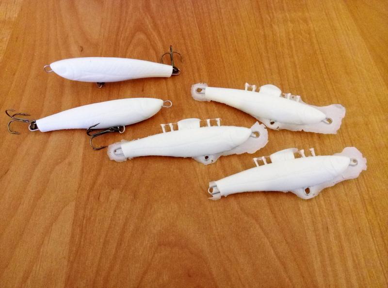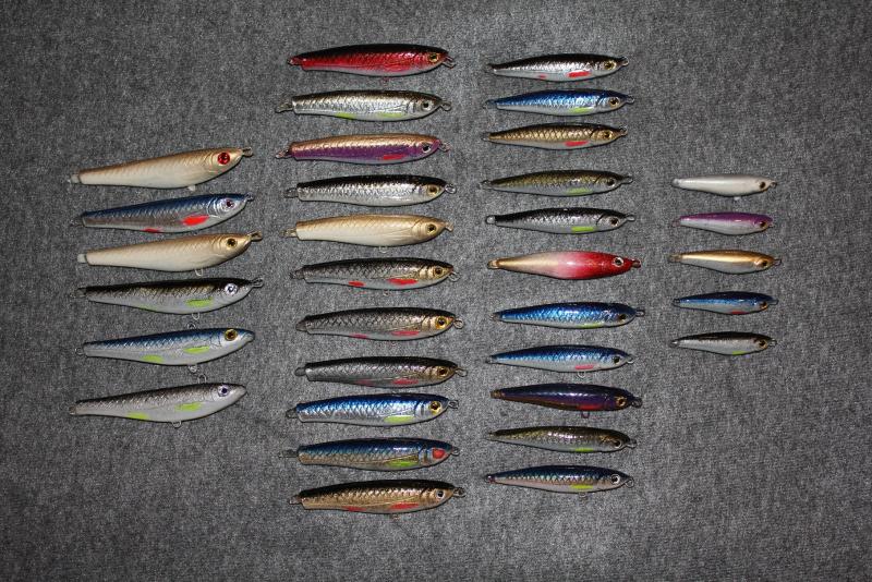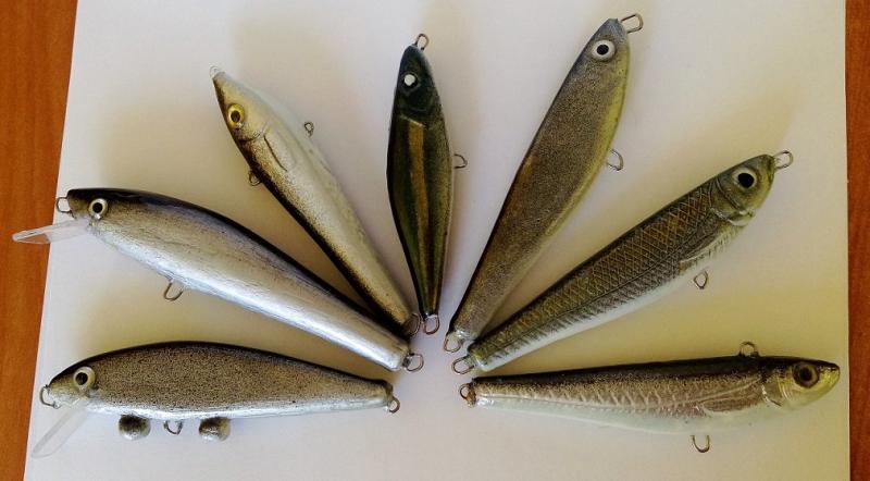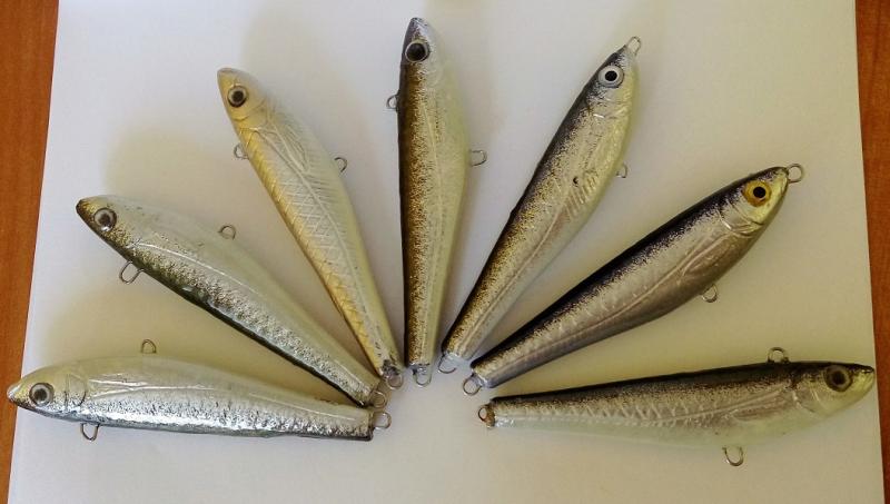 Pierwsze woblery zacząłem strugać około 1,5 roku temu z lipy i balsy, jednak nie sprostały moim wymaganiom i do czerwca zeszłego roku zawiesiłem zabawę z przynętami, kiedy to zacząłem swoją przygodę z woblerami z żywicy, poniżej poglądowe zdjęcie jak zmieniały się moje przynęty: