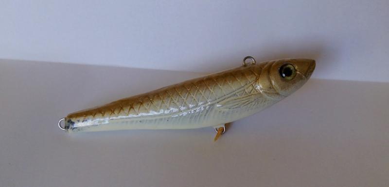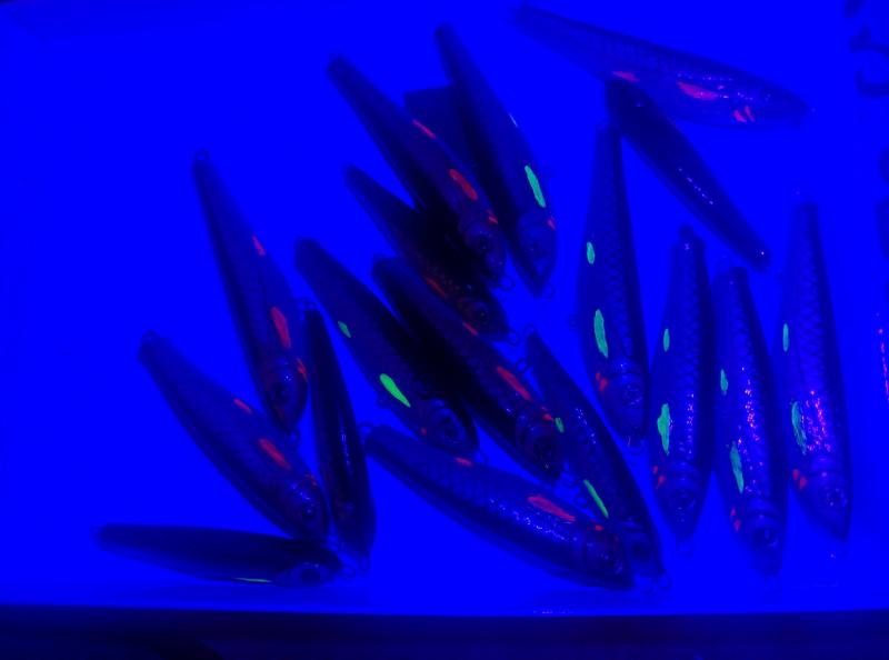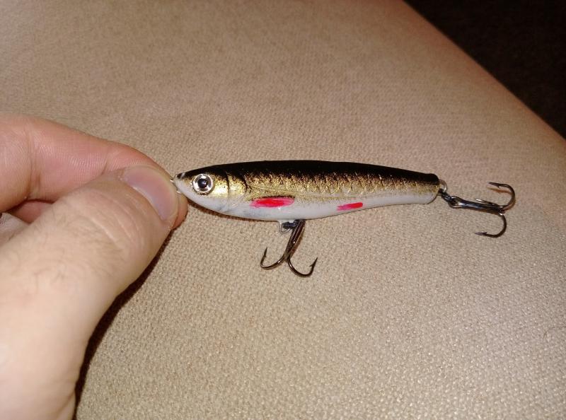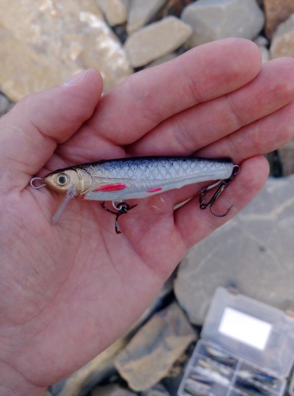 8 cm ok 19 g bez kotwic, z nich jestem najbardziej zadowolony jeżeli chodzi o pracę. Bardzo uniwersalny, zarówno do szybszego i wolnego prowadzenia. Po lekturze jednego z wątków dotyczącego widzenia ryb w UV postanowiłem, że dodam jakieś drobne akcenty do swoich przynęt, w tym wypadku płetwy. Nie mogę doczekać się maja i testów na boleniach :)