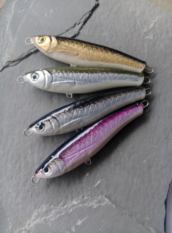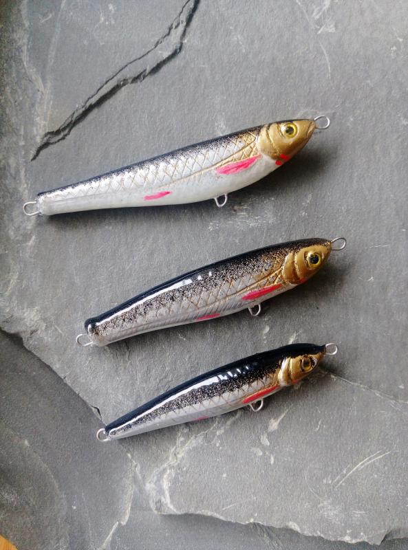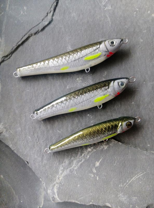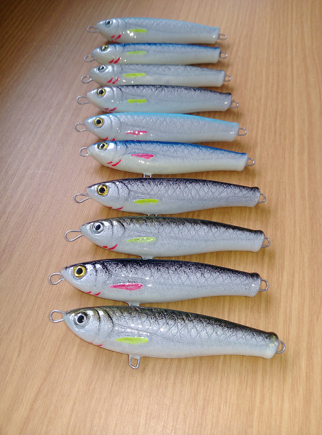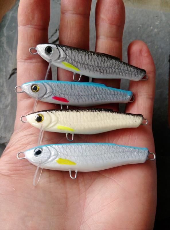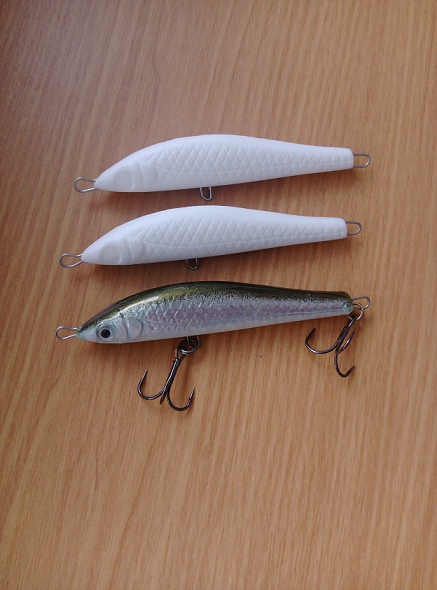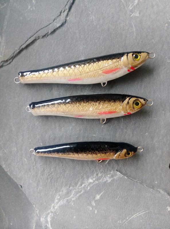 Woblery które obecnie wykonuję są w zdecydowanej większości modelami bezsterowymi, ponieważ takie najbardziej pasują mi pracą, zasięgiem rzutu i uniwersalnością. Wykonuję woblery w wielkościach 5, 7, 8 i 9 cm, wobler 6cm czeka na formę J