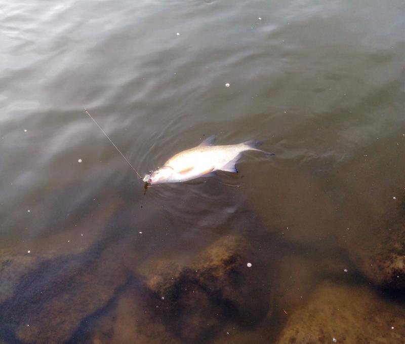 Dawno nie wstawiałem zdjęć rybek, ale ostatnio brakowało czasu na wędkowanie a rybki, które udało się skusić nie spełniały wymogów forum. Jednak dzisiaj bardzo się zaskoczyłem jak zobaczyłem jaka ryba zagryzła mojego woblera AK80 (taka nazwa dla 8cm :P), a mianowicie... leszcz :P jak czytałem w wątku Nowwwaka o dość częstych przyłowach leszczy na niewiele mniejsze przynęty, to powiem szczerze, że sceptycznie podchodziłem do tego.