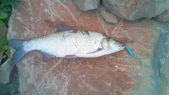 kolejny boleń 60 cm (znów trochę brakuje do min ;( ) tym razem na 7 cm z jedną kotwicą - pierwsza rybka na ten model :)