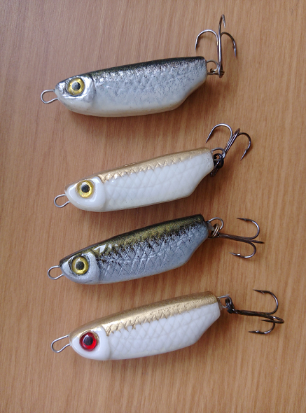 poniżej wklejam zdjęcia woblerów 1. i 4., reszta jest dopiero malowana :P.