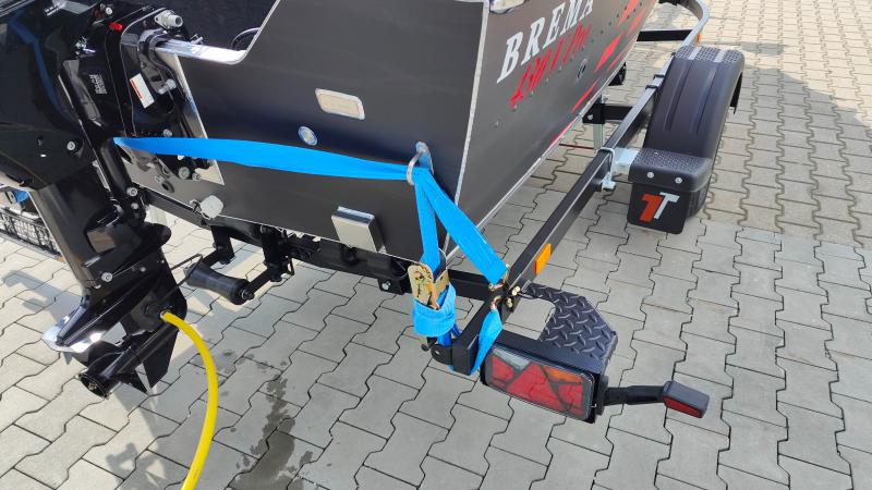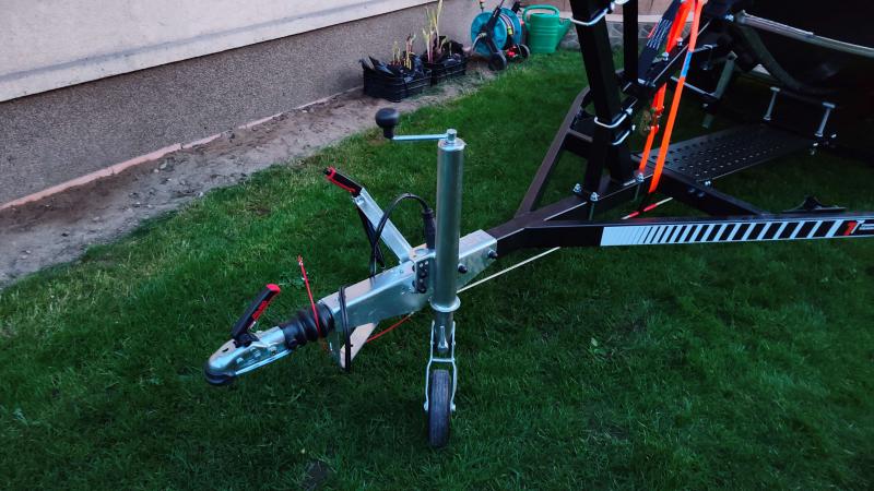 0 rower26 Opublikowano 26 Maja 2023 Zgłoś Udostępnij Opublikowano 26 Maja 2023 (edytowane) Brema w aktualnym wykonaniu. Łodki stały się bardziej "cywilizowane". Nie widać już gołego amelinium na pokładzie. Na podłodze mam vinyl a na burtach i bakistach zostawiłem sobie wykładzinę. Jak się kiedyś spieprzy to najwyżej wymienię na vinyl na całości. Na razie były oszczędności. Zamiast relingów mozna bez dopłaty zamówić sobie prowadnice railblaza. Ja zostawiłem relingi. Przyczepka hamowana Thomas Trailers DMC 900 kg - ze względu na ograniczenie auta na przyczepkę niehamowaną do 600 kg. Co ciekawe dla przyczepki hamowanej mam w aucie DMC 2000 kg. Przyczepka na osi wododpornej AL-KO, urządzenie najazdowe i wyciągarka również AL-KO. Full LED. Jeździ się z tym bardzo przyjemnie. Zrobiłem juz jakieś 2000 km. Pasy transportowe zmieniłem już na IMMI Boat Buckle - tutaj jednak wygoda wzięła górę nad skąpstwem. W innym wątku pisałem o osiągach na suzuki DF30. Samemu 45 km/h z gratami. 25l + 5l paliwa zapas. W dziobowych bakistach kawasiak 64Ah + Lifepo4 100ah. gratów wędkarskich ze 20 kg i ja pod 100. We dwóch po 100 kg + kolejne 20 kg gratów 40 km/h. Śruba zmieniona na skok 11. P.s. nie wiem jak to nazwać ale chcę dokupić do przyczepki taki sztyce po bokach które ułatwiają manewrowanie jak nie ma na przyczepce łódki i nie widać samej przyczepki. Mam co prawda kamerę cofania ale przezwyczajony jestem do patrzenia w lusterka. Czy ktoś z was może podzielić się linkiem do takich "sztyc" Podzielę się jeszcze z wami wrażeniami z samego procesu zakupu. Odniosłem wrażenie że było średnio na jeża ale jak zaszłyszałem co wyprawiają inni produceni z Tangiri włącznie, jak to trzeba ich prawnikami straszyć żeby wywiązali się z czegokolwiek to już nie jest tak źle i w sumie, efektem finalnym, jestem bardzo zadowolony. Miałem sytuację z przyczepką. Umówieni jesteśmy na odbiór. Dzwoni P. Jarek że przyszła przyczepka ale jest za długa. Wysyła zdjęcie a tam, jakby malucha postawił na lawetę do traktora. Zaoferował że tą przyczepkę zostawia pod inne łodzie a w tydzień Thomas zrobi mi nową przyczepkę, krótszą. Wyszło z tego co prawda dwa tygodnie ale w piątek, przed samą majówką łódkę finalnie odebrałem. Dodam że łódka stała gotowa od marca. Edytowane 26 Maja 2023 przez rower26 6 Cytuj Odnośnik do komentarza Udostępnij na innych stronach Więcej opcji udostępniania...
