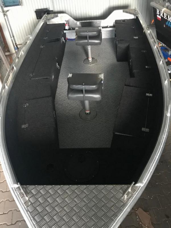 Brema w aktualnym wykonaniu. Łodki stały się bardziej "cywilizowane". Nie widać już gołego amelinium na pokładzie. Na podłodze mam vinyl a na burtach i bakistach zostawiłem sobie wykładzinę. Jak się k