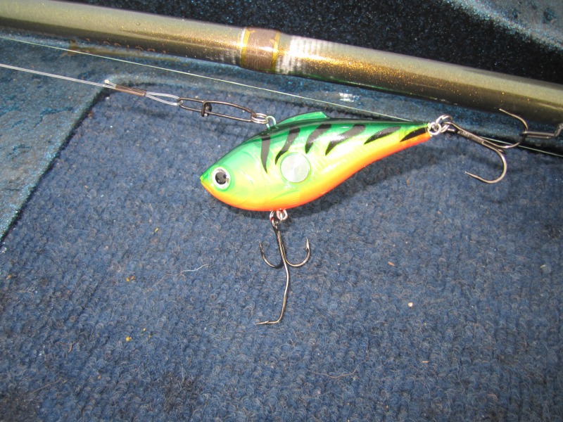 Mialem pewne problemy ze sprzetem, kupilem wedke cabelasa od 3/4 do 3oz i kolowrotek abu bcx. Uchwyt kolowrotka nie jest pierwszych lotow i przy mocniejszym szarpnieciach duzej obrotowki czy zacieciu kolowrtotek wyskakiwal z uchwytu hehe, wyklalem cabelasa na wszystkie strony swiata, wedka w odstawke i zmuszony bylem uzywac inny casting do 1,5 oz i na niego wlasnie zlowilem swojego pierwszego muskiego. Przyneta byla Rapala Clackin' Rap pozniej wstawie zdjecie kotwiczki hehe.
