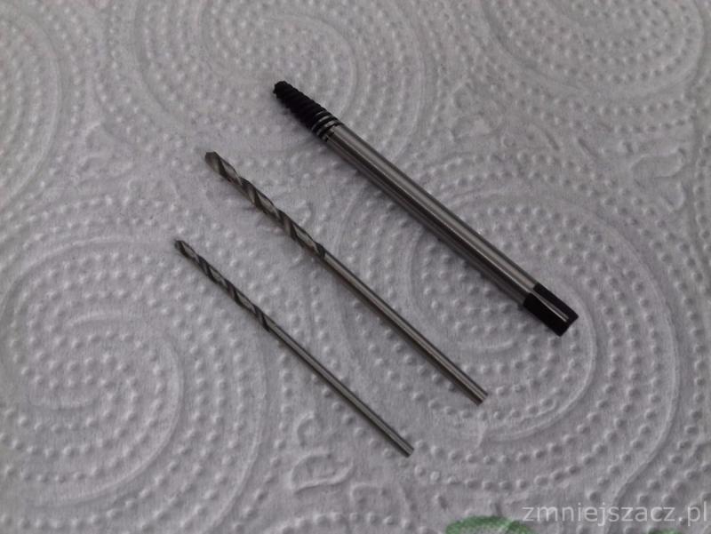 3. zdjęcie nr 3 - zestaw pomocników, czyli dobre wiertła do metalu w rozm. 1,5 i 2,0 oraz rozwiertak 3mm (nie było mniejszego).