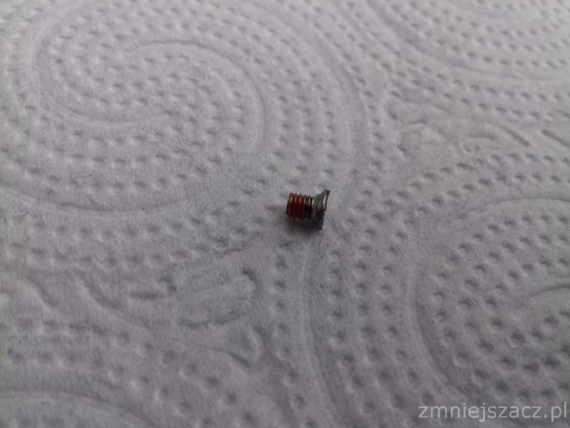 Mialem podobny problem z srubka od pokrywy  curado. Rozwiercilem leb,po zdjeciu pokrywki , zostalo ca 2mm sruby. malymi szczypcami wykrecilem reszte. Wykrecilo sie naprawde lekko. Nie mozesz za gleboko wiercic. Srednica wiertla , taka jak sruba, mysle ze 3mm starczy, glowka sruby odpadnie. Czy u Ciebie sie tak da, to nie wiem :rolleyes: