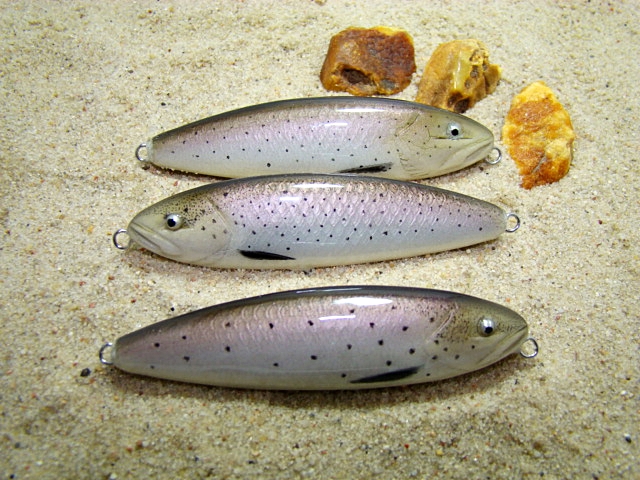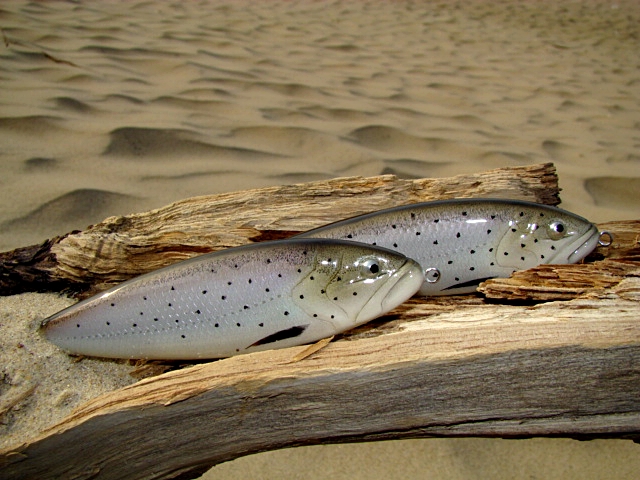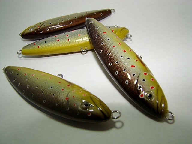 Loco Opublikowano 10 Kwietnia 2017 Zgłoś Udostępnij Opublikowano 10 Kwietnia 2017 (edytowane) Dobry wieczór wszystkim "rękodzielnym" ( i nie tylko) Aby zimowe wieczory urozmaicić i aby dłonie nie zardzewiały postanowiłem w oczekiwaniu na przedwiośnie "zepsuć" kilka lipnych szczap... Nie wypadało pozostać biernym kiedy "Polska w trocinach" Struganiem param się od niedawna i są to można rzec moje pierwsze w tej materii kroki. Mam nadzieję,że z czasem nabiorę większej wprawy i zbliżę się do kolegów tu obecnych-z prac których czerpałem podglądając warsztat. W głowie sporo pomysłów,patentów i wizji (opary lakierów wbrew pozorom mogą mieć duży wpływ na wyobraznię) Materiał to lipa,malowanie aerografem,oczy własna inwencja. Pozwólcie,że przedstawię z imienia i wymiarów kilka moich wypocin. Ukleje 9cm Okonie 7cm Płocie 6 i 8cm Trotki 8cm Wszystkie woblerki pływające (zdjęcia jeszcze bez sterów) Postaram się w niedługim czasie zamieścić projekcję z pracą wobków. Niebawem kolejne odsłony (na warsztacie także jerki) Pozdrawiam-Adam Edytowane 10 Kwietnia 2017 przez Loco 30 Cytuj Odnośnik do komentarza Udostępnij na innych stronach Więcej opcji udostępniania...