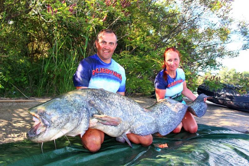 Ta odpowiedź cieszy się zainteresowaniem. Slavobeer Opublikowano 7 Lipca 2017 Ta odpowiedź cieszy się zainteresowaniem. Zgłoś Udostępnij Opublikowano 7 Lipca 2017 (edytowane) A tu jego starszy brat Sumik złowiony na kijek FIUME Arsenal 2,7 do 30g, guma Relax 4''. Hol ekstremalny, ryba szalała na kiju Najpierw sumik grzecznie podpłynął niemal pod nogi, po czym zaczęły się brutalne odjazdy po 100m nawet.Ryba zaczęła słabnąć dopiero po ok. 20 minutach siłowego holu. Dobrze, że Kolega Ziom pomógł bo mi już ręce i nogi odmawiały posłuszeństwa. Taki hol to lepsze niż siłownia !!! Za drugim razem sumek dał się podebrać i okazało się, ze jest tak ciężki, że z trudem go wyciągnęliśmy na brzeg.Po szybkiej sesji rybka została wypuszczona. Sporo czasu dochodził do siebie przy brzegu, ale jak majtnął ogonem i zawinął w głębiny to od razu człowiekowi się lepiej zrobiło Slavo P.S.Ta czerwona gęba to rezultat ogromnego, jak dla mnie, wysiłku podczas holu . To nie jest efekt tego, po co wielu przychodzi nad rzekę Edytowane 7 Lipca 2017 przez Slavobeer 67 Cytuj Odnośnik do komentarza Udostępnij na innych stronach Więcej opcji udostępniania...