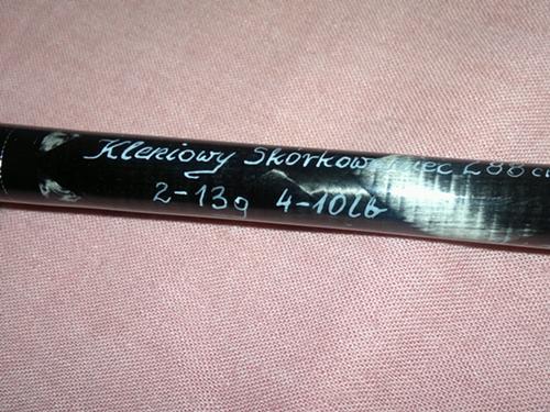 Dąbek 111 Opublikowano 11 Stycznia 2013 Autor Zgłoś Udostępnij Opublikowano 11 Stycznia 2013 Wędka z przeznaczeniem na wiosenne wiślane klenie i letnie bolki .Przeróbka muchówki #5-6 288cm stojącej naście lat za szafą Artura @Ark70(dzięks Artur) .Po demontarzu przelotek i rękojeści ,nastąpiło zdjęcie lakieru ,farby i po szlifowanku ,ukazała się ciekawa faktura mięsistego, grubościennego blanku.Przelotki PB minma 4 hrd V-ki od 25do 5 10sztuk +szczyt alconit w srebrnej ramce i tu podziękowania dla Wojtka @woblerWZ Uchwyt Fuji DPSM18(przycięty ok2cm pod Shimano SuperX 2500) ,bo taki akurat był na stanie ,a dzięki swojej średnicy umożliwił płynne połączenie z reagripemdługości 29cm, wykonanym z korka aglomerowanego ze wstawkami burnta i korkogumy.Fore ozdobione pierścionkiem z nierdzewki.Wędka wyważona zw/w kołowrotkiem dokładnie 0.5cm przed koncem fore. , na ostatnim plasterku korkogumy. Kij ma zajebiaszcze ugięcie ,szkoda że nie zdążyłem porzucać przed drugą odsłoną zimy. 2 Cytuj Odnośnik do komentarza Udostępnij na innych stronach Więcej opcji udostępniania...