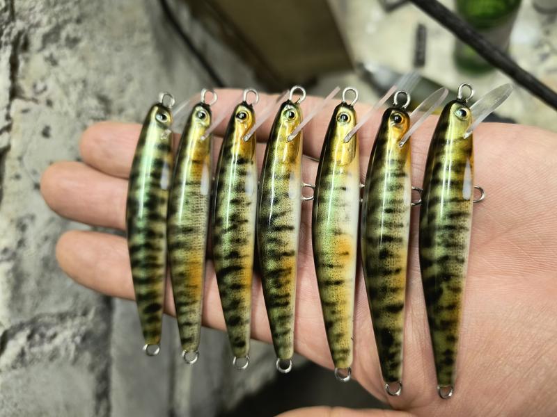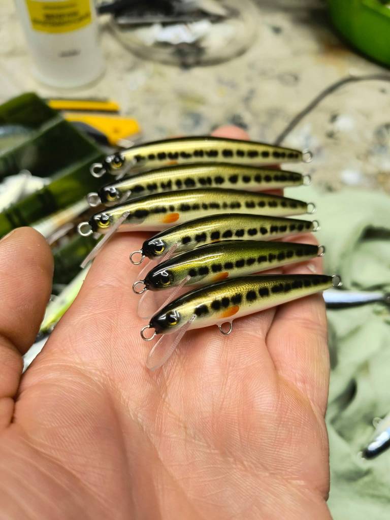 Powstała z korpusu (pstrągowo- sandaczowej) zapałki 7cm. Waga uzbrojonej około 8,5 grama . Lustro w opadzie drobna migocząca praca. Dzięki smukłości i sporej masy bardzo lotna . ????Wykonana z drewna samby