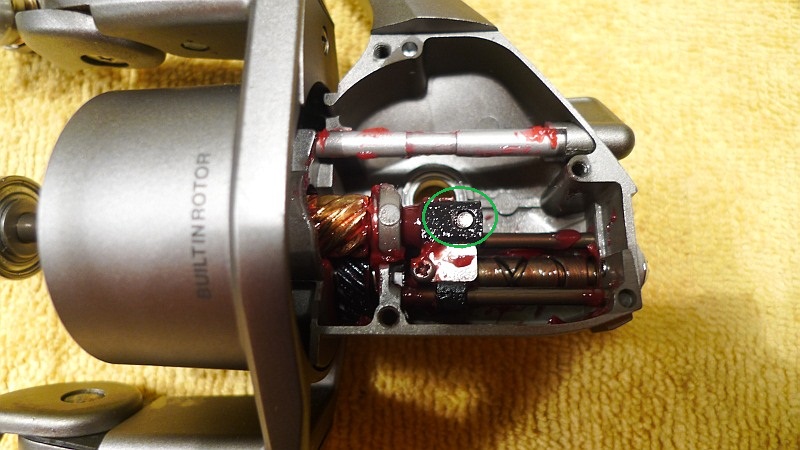 Pszemo Opublikowano 22 Października 2011 Autor Zgłoś Udostępnij Opublikowano 22 Października 2011 Część 2 Po oczyszczenniu prezentowało się to mniej więcej tak Nie zniknął jednak syndrom do ktorego dorobiłem sobie ideologię. Mianowicie podczas kręcenia korbką w momencie kiedy szpula jest maksymalnie schowana słychać minimalny szmer mechanizmu. Jak sie okazało główne kolo przekładni muska w tym momencie element ze zjdecia korpusu powyżej zaznaczony zielonym kółkiem który przy schowanej szpuli znajduje się pod prawą krawędzią koła przekładni. Po dogłębnym przemysleniu tematu stwierdzam że podkładki nie pomogą, chyba że na łożysko od strony gdzie wkręca się śrube w korbkę ale to spowoduje zwiększenie luzu na przekładni a jest on idealny. Gnizado łożyska od dołu nie wyrobilo się wyglada zupenie zwyczajnie. Moja teoria brzmi następujaco: główne kolo przekładni ma wytarta powierzchnię ceramiczną co powoduje mocniejsze jego osiadanie na pinion gear. Zdjecie podkładni od strony korbki sprawia że wyraźnie czuc zęby więc nie jest to wyjście z sytuacji. Jestem trochę w kropce i nie wiem co zrobić ( nowego kola i pinion gear już do tego modelu nie dostanę ). Czy powinienem zeszlifować drobniuteńkim papierem powierzchnię ceramiczną na elemencie zaznaczonym na zielono?? ja osobiście nie widze innego wyjścia. Proszę o sugestie bardziej doświadczonych kolegów Cytuj Odnośnik do komentarza Udostępnij na innych stronach Więcej opcji udostępniania...